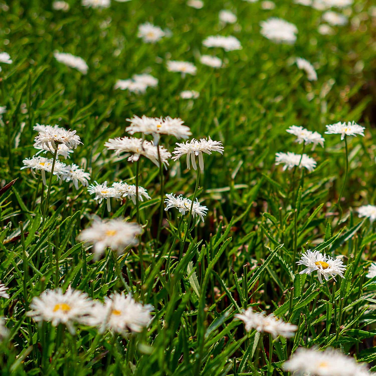 Złocień wielki (Leucanthemum maximum) to klasyczna bylina ogrodowa o kwiatostanach przypominających duże stokrotki – z białymi płatkami i intensywnie żółtym środkiem.