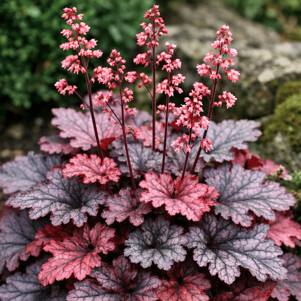 Żurawka (Heuchera) to niezwykle dekoracyjna bylina ceniona przede wszystkim za efektowne ulistnienie w szerokiej gamie kolorów – od zieleni i purpury, przez srebro, aż po głębokie odcienie bordowego i brązu.